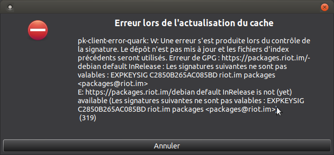 EXPKEYSIG C2850B265AC085BD riot.im packages <packages@riot.im>et ce fil > proposant de supprimer Riot