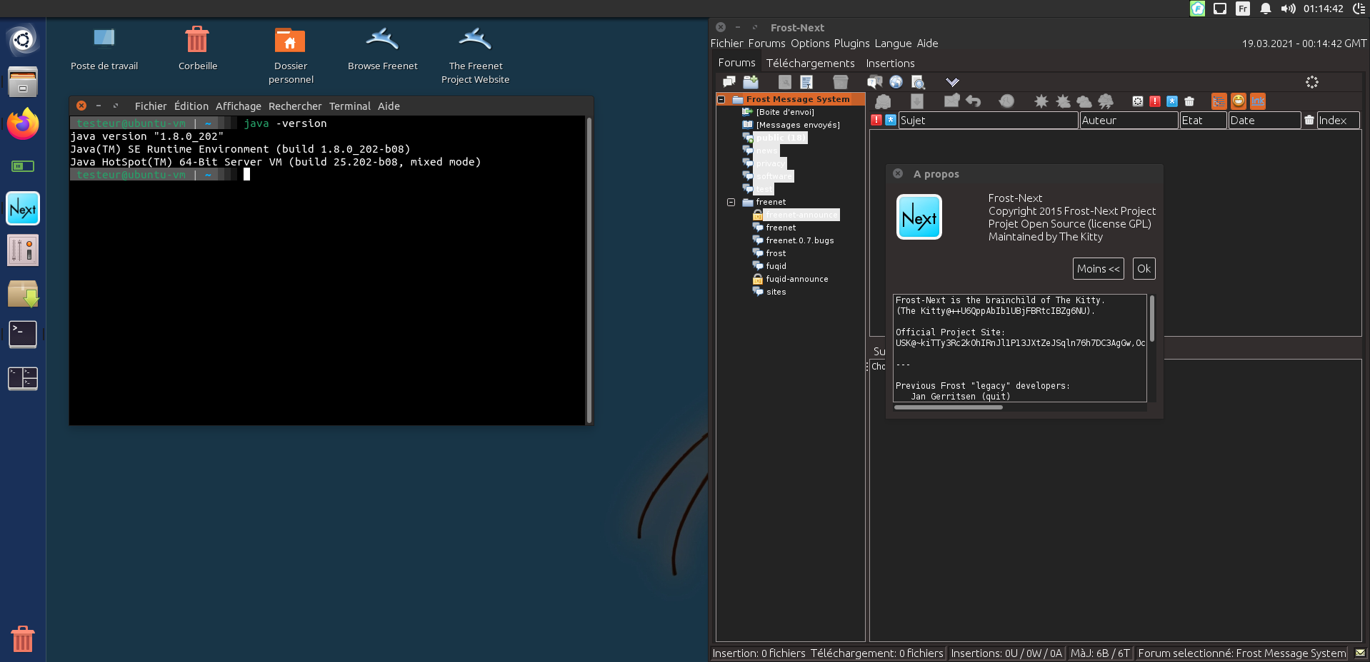 Le truc c'est qu'il y a très peu de documentation sur Freenet, encore moins sur Frost, encore moins sur Frost-Next, et alors en FR jsur Linux 'en parle même pas je suis livré à moi même lol. Mais bon, ça doit être un problème de version de Java donc si un connaisseur passe par là il pourrait peut être m'aider.